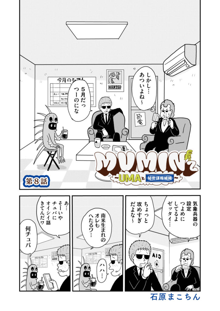 連載マンガ「MUMINz ~UMAと秘密諜報組織」の第2話です。ムー民にして都市伝説ウォッチャーとしておなじみのマンガ家・石原まこちんさんが、UMA騒動の裏に隠された諜報組織の暗躍を暴く……というもの。もちろんフィクションですが、あながち真実かもしれません。