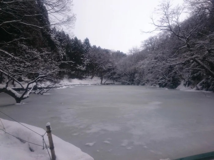 人面魚を探そうと思いましたが、冬だったので氷が貼っており、そもそも水面が一切見えない状態でした。