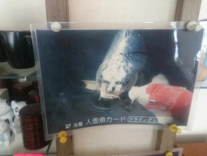 ここには「人面魚 IN KAIBAMI NO IKE」と書かれています。