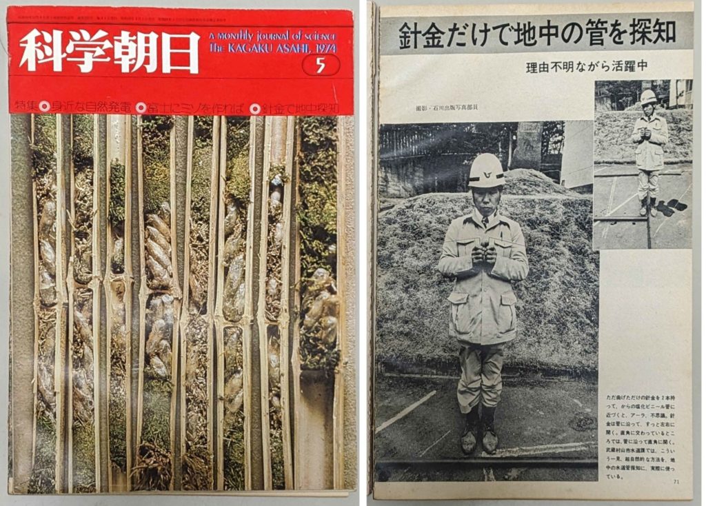 なんだかゴチャゴチャして時制がよくわからなくなってくるのだが、ここで注目すべきは、「地底の国探検」でも触れられている「武蔵村山の水道局」案件である。1973年、東京都武蔵村山市の水道局で地中の水道管探査のために「ダウジング」を用いているということが話題になり、これが当時はちょっとした「社会問題」に発展していた……。
