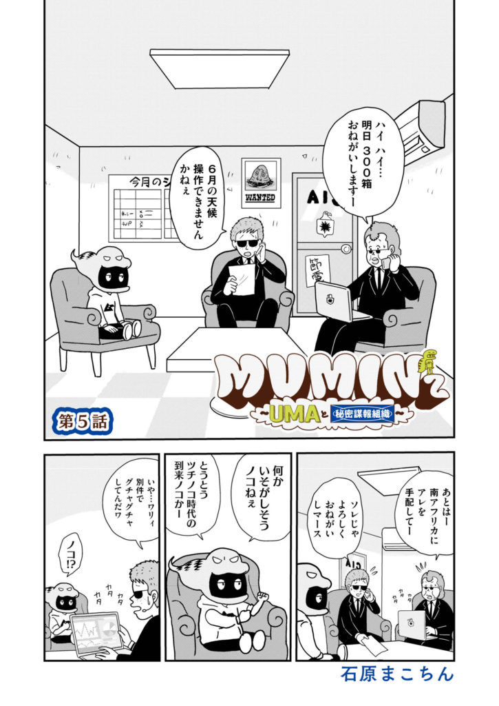 連載マンガ「MUMINz ~UMAと秘密諜報組織」の第2話です。ムー民にして都市伝説ウォッチャーとしておなじみのマンガ家・石原まこちんさんが、UMA騒動の裏に隠された諜報組織の暗躍を暴く……というもの。もちろんフィクションですが、あながち真実かもしれません。