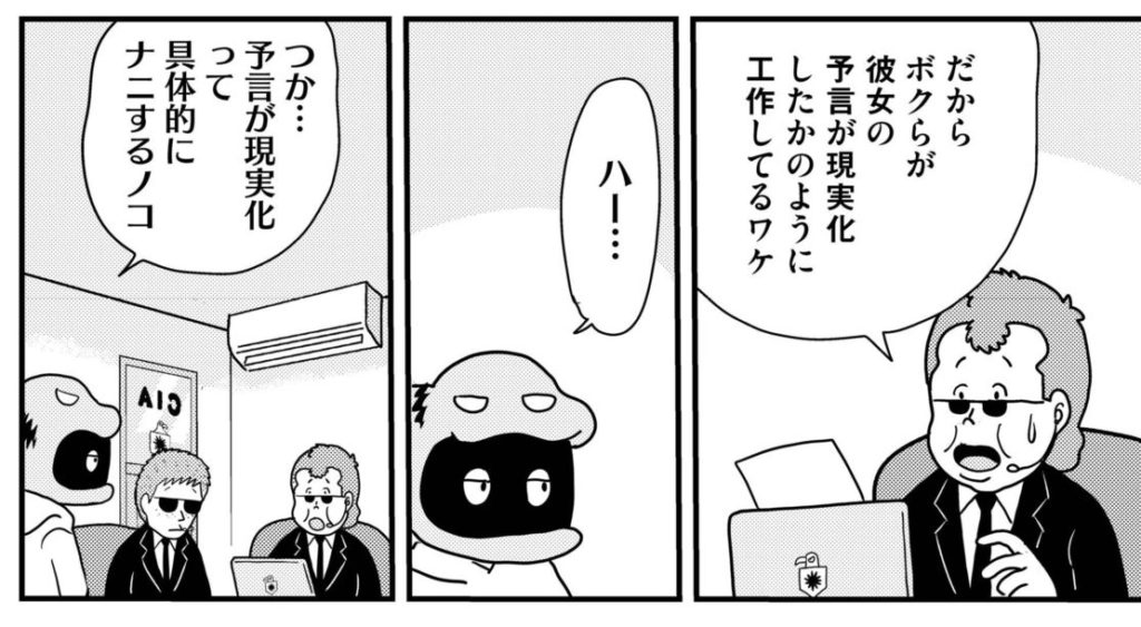 今回の元ネタは「予言」。災害や事件が発生すると、予言や余地が発見されることもありますが、そこには「予言を現実化する」ための工作もあるでしょう。