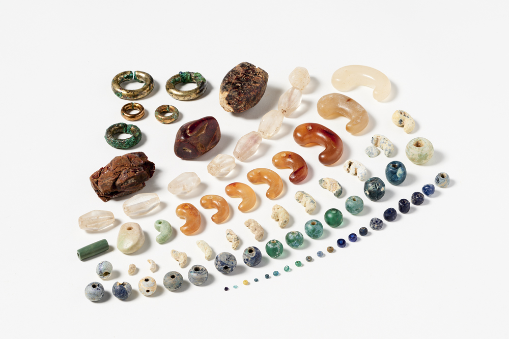 テーマが広大なだけに、展示される資料もバラエティ豊か。たとえば「いろ、つや、かたち」の総合作品ともいえる建築の彩色模型もあれば、赤い色に重要な意味が見いだされていた疱瘡除けの「赤絵」もならぶ。さらに1500年もの昔に王や権力者たちの身体を彩った、勾玉や管玉といった装飾品も「かたち」や「いろ」を通してその意味が読み解かれる。