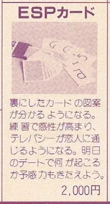 ●「ESPカード」(1987年のオカルト誌より)。なぜか「恋愛仕様」を強調する軽いタッチの解説文が非常に80年代的である。「ESPカード」を買ってもらえなかった僕は、中岡俊哉の本を参考に画用紙とマジックでせっせとカードを手づくりしていた。次に紹介する「ダウジンググッズ」にも同様の思い出がある。『ドラえもん』で「ダウジング」について知り、いてもたってもいられなくなって、藤子・F・不二雄先生の絵を参考に適当な針金をペンチで曲げ、自家製の「ダウジングロッド」をつくったものだ。
