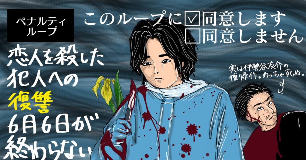 困惑しながらも復讐を繰り返す岩森だが、何度殺しても翌朝は来ず、その度に恋人の敵を討ち続けることになる。昨日殺した敵を、今日もまた殺す。自らが選んだはずの復讐のループは否応なく繰り返される。何度でも復讐できるプログラム=「ペナルティループ」の果てには何があるのか?