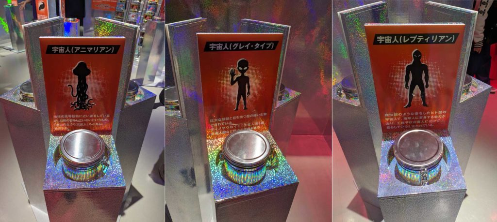 ムー監修の「未知のにおい」として体験できるのは、「UFOの内部」「宇宙人」「ツチノコ」「ビッグフット」「チュパカブラ」など12種類。