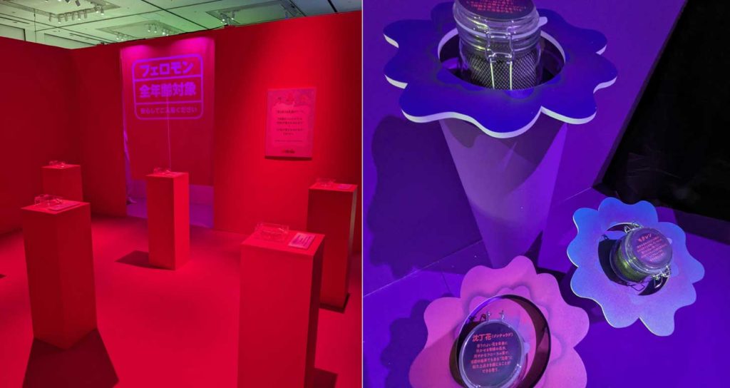 「においの森」では、シュールストレミングやくさや、ドリアン、臭豆腐などから、花畑をイメージしたフローラルなコーナー、さらには異性をひきつけるフェロモンなどを体験できるという、嗅覚エンターテインメント。
