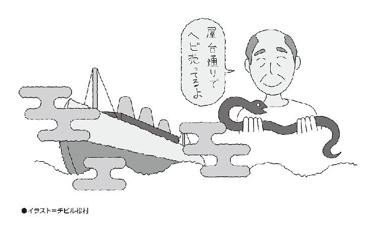 そして現在(霊界の現在って何?)おじーちゃんは、霊界の屋台通りみたいなとこでヘビを売って商売をしているのだそうだ。