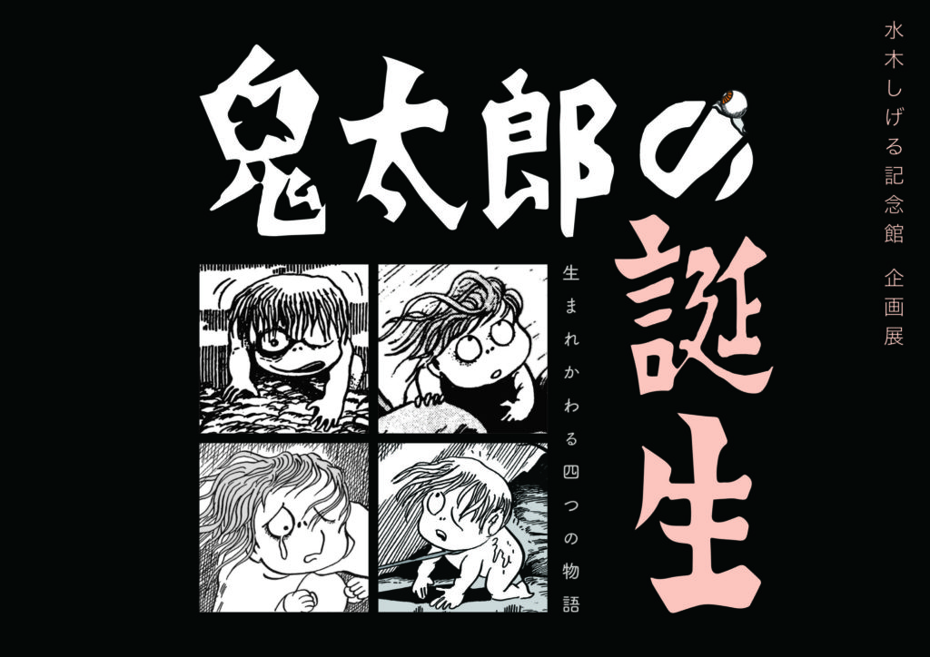 戦前に作られた古い紙芝居の中に、民話怪談「飴屋の幽霊」(妊婦のまま死んだ女性が、墓の中で生まれた赤ん坊を育てる話)をモチーフにした「ハカバキタロー」というヒット作があり、その内容をヒントにして1954年頃に水木しげるが作ったのが「蛇人」という紙芝居。この中で、初めて水木しげるによる「墓場の鬼太郎」というキャラが登場し、これが鬼太郎シリーズの原点となる(当時、既存作品を元に新しい紙芝居を作ることは普通だったそう)。その後、漫画家に転向した水木しげるは、紙芝居作家時代に描いた鬼太郎をベースに、1960年に貸本「妖奇伝」で初めて漫画「鬼太郎の誕生」を描く。そこから漫画「ゲゲゲの鬼太郎」につながっていくのだ。
