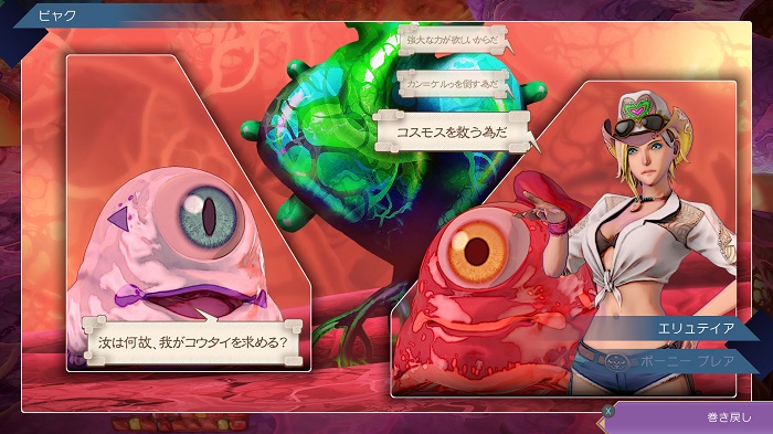 本作の鍵を握るシステムは、主人公たちを導く「エメラルドヴィジョン」。各世界をつなげる「連接領域」というエリアで、エメラルドヴィジョンが指し示す複数の扉のうち、ひとつに入ると物語が進んでいきます。