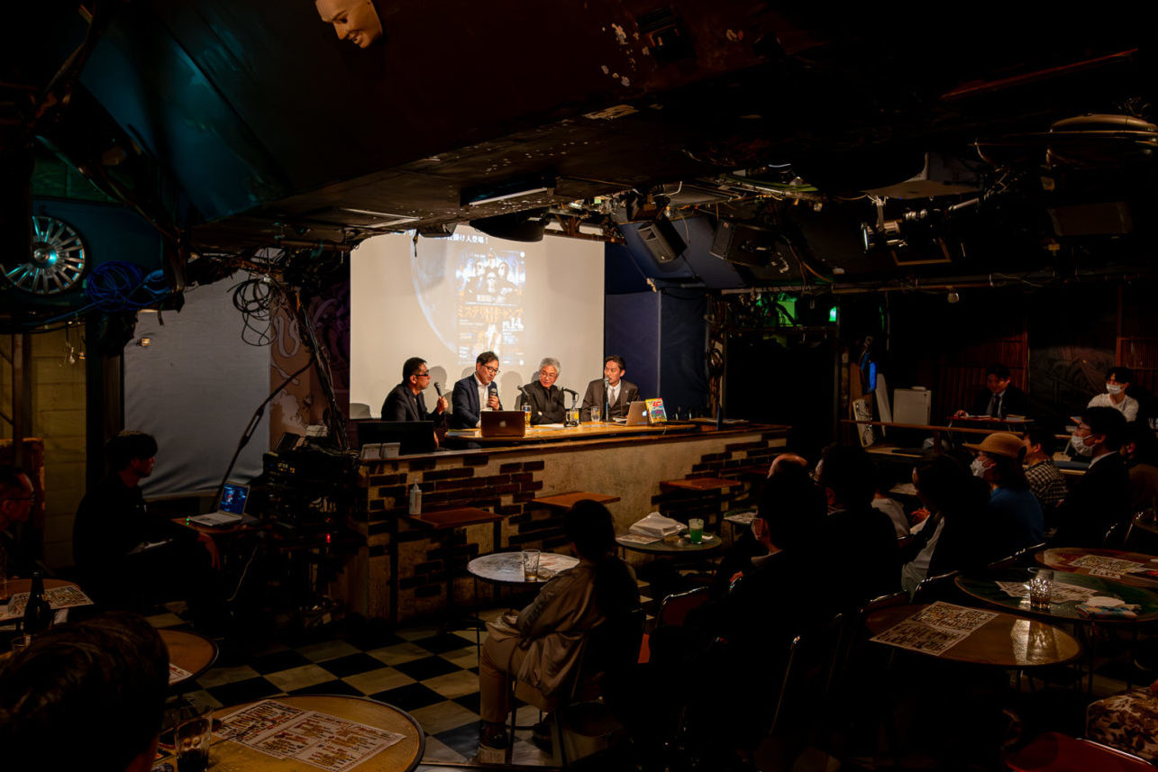 登壇者は、株式会社地球の歩き方社長・新井邦弘氏と「ムー」三上丈晴編集長。ここに「青森キリストの墓の仕掛け人」こと角岸秀伸氏が参戦、さらにムー愛読者・ムー民であることを公言するアーティスト坂東工さんが司会としてこの荒馬たちの手綱をひくという異例のトークイベントだ。