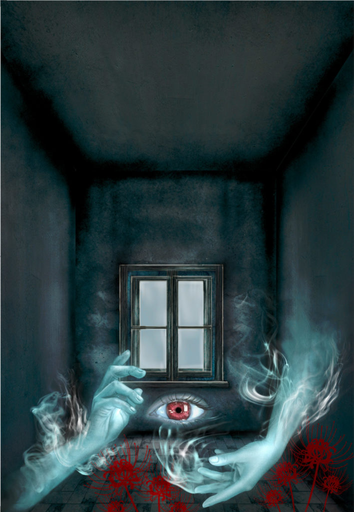 「三茶のポルターガイスト」は東京・三軒茶屋にある心霊現象が多発するビルで撮影されたドキュメンタリー映画ですが、現地で直接「物質化した幽霊」を見た三上編集長曰く、「手や顔が壁や天井からニュッと現れる」そうなので、それをイメージして今回の表紙を描いてみました。