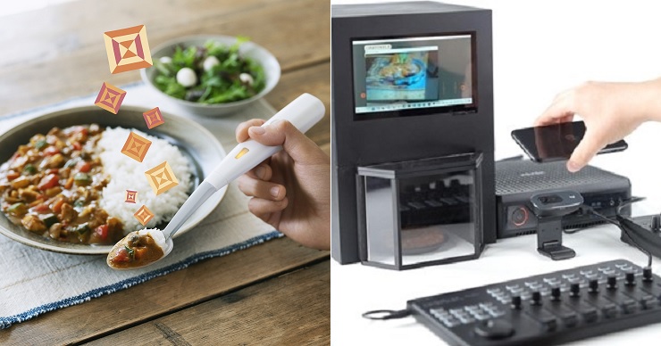 一方、明治大学の宮下芳明教授は味覚とメディアの融合を試みる研究を長年行っている。味覚センサーで食品の五味(甘味・塩味・酸味・苦味・うま味)を分析、その味の分布に合わせてグルタミン酸などの化学物質を調合することで、元の味を再現する装置を作った。(※2)