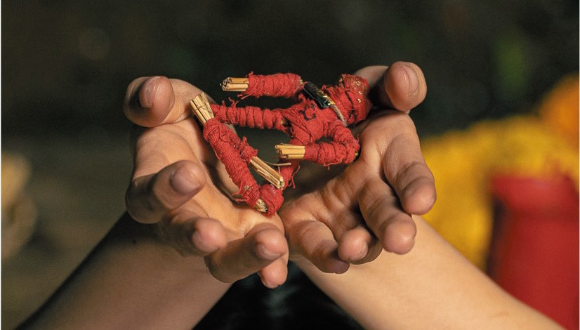 映画のもうひとつの主人公は呪物である。タイトルにもなっている「フンパヨン」とは、タイの呪物のなかでも最古のものともいわれる。「フン」とは「ヒトガタ」のことで、「パヨン」は「宿らせる」という意味からわかるように、まずは人の形をした依り代を作ることから始まる。素材は織り草や織り蔓、木、粘土、布、金属などさまざま。それを人の形にし、特殊な鍋で煮詰めた薬草や、ミントやユーカリの成分が含まれた霊油を塗りながらお経を唱え、生命を吹き込む──そうした呪術的手順により、フンパヨンは力を持ち、呪物となるのだ。