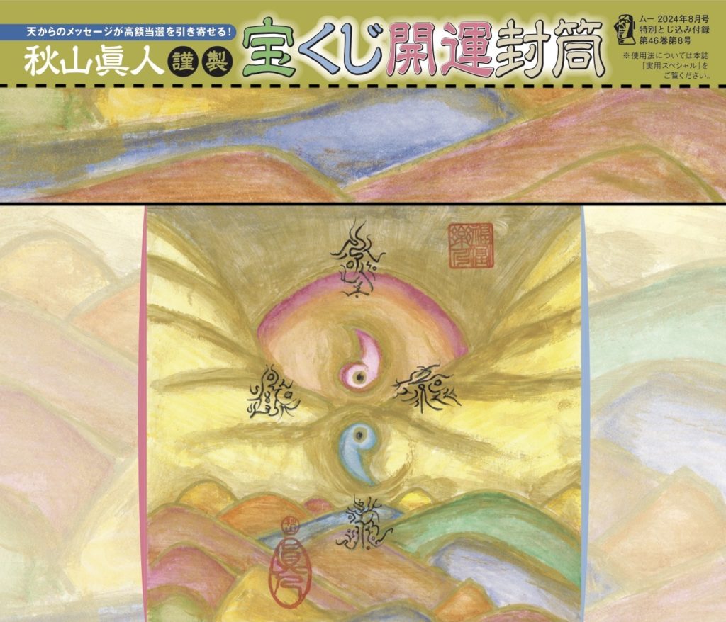 ここでは「ムー」7月号の巻末とじ込み付録「宝くじ開運封筒」の使い方と、簡単なおまじないなどをお教えしましょう。 *このwebムー版や電子版でなく、紙版でお求め下さい! まずは開運封筒について。 ミシン目に沿って封筒を切り離すと、「宝くじ開運封筒」などの文字が入った部分も一緒についてきます。その部分をハサミかカッターで切り取ってください。下の写真に破線で示した部分が切り取り線になります。 切り取ったら、封筒のフタになる部分を山折りにします。下の写真の実線の部分です。 これで封筒が完成しました。 宝くじを購入したら。この封筒に入れて保管するのですが、より当選確率を上げたい場合は次のようにしてください。 封筒がのるくらいの大きさの平たい皿を用意し、宝くじの入った封筒をのせます。そのうえに、1円玉、5円玉、10円玉をランダムにのせましょう。1円玉は銀、5円玉は金、10円玉は銅だとイメージしてのせることがポイントです。 枚数は何枚でもけっこうですが、多いほど効果が高くなります。というのは、このおまじないは「お金はたくさんあるところに行こうとする」という法則を利用したものだからです。 宝くじの入った封筒と金銀銅(5円玉・1円玉・10円玉)をのせた皿は、住まいの西側に置きます。購入日から発表の日まで、財布にたまった1円玉、5円玉、10円玉を適宜、皿にのせて増やしていきましょう。封筒が隠れるくらい増えたら、そこでストップして大丈夫です。 ※ムー7月号の巻末とじ込み付録「宝くじ開運封筒」がお手元にない場合は、購入した宝くじを未使用の封筒に入れて平皿に置き、その上に1円玉、5円玉、10円玉をのせても、それなりの効果が得られます。