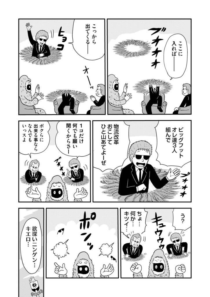 今回のネタは「ビッグフットの超能力」。北米に生息する獣人ビッグフット(サスクワッチ)は、ボルテックスというゲートを使って神出鬼没の移動をしているのです。日本では人出不足が深刻な物流業界の危機を救うのはビッグフット(の超能力)なのかもしれません。