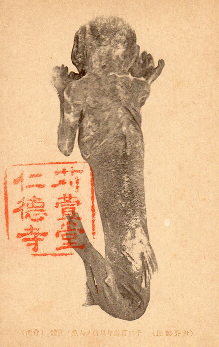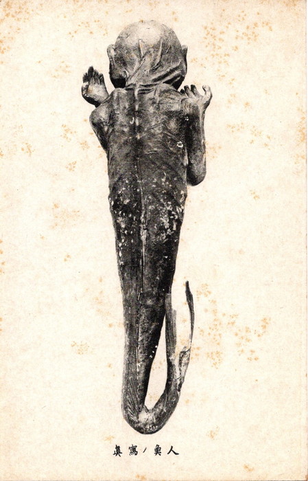 藤井 鬼だけではなく人魚の写真も複数ありまして、なかでもこの絵葉書の写真は有名ですね。人魚の正面から見た姿と、背面からみた姿がセットになっています。
