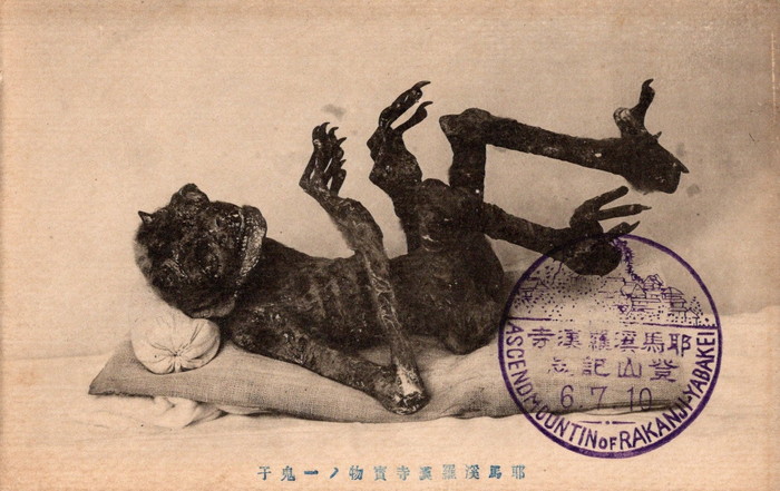 藤井 いえ。4枚組の絵葉書のようですが、ほかに周辺情報が一切ないのです。ただ、富山県の永願寺に同じような鬼の頭部と腕のミイラがあり、それだと推測されます。