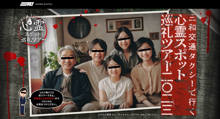 7月12日付『産経新聞』朝刊「心霊スポットタクシー巡礼」は、横浜市に本社を置く三和交通が展開する「心霊スポット巡礼ツアー」を紹介。広報担当者によると、同ツアーは10年前に吉川永一社長が考案し、平成27年から夏のイベントとして実施している。ドライバー兼ガイドの運転手と一緒に多摩の恐怖スポットを夜通し8時間走り回るというもので、これまでの申込者の平均倍率は28倍という。記者の体験取材では、スマホが固まって反応しなくなったという。
