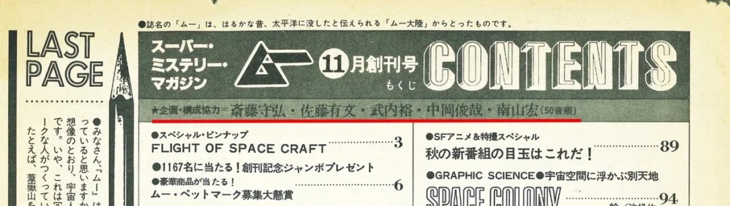 創刊当初は隔月刊でした。まだこの分野のライターもそんなにいないわけです。それで大御所として南山宏さん、斎藤守弘さん、佐藤有文さんあたりは押さえといたほうがええでとアドバイスして、たしか創刊号はそのお三方と若手のわしが企画協力という体裁やったと思う。ただ実際の企画にはフットワークが必要なんで、たしか山梨賢一さんとか阿基米得さんとかに声をかけて、スタートした記憶があります。
