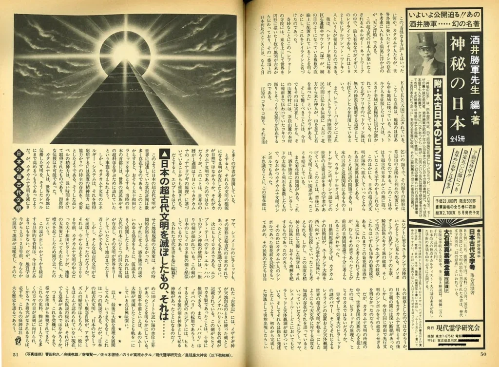 「ムー」が月刊化してからの1982年5月号の総力特集で「日本超古代文明の驚異」というのを書いて、酒井勝軍の『神秘之日本』を宣伝したらけっこう反応があったわけです。