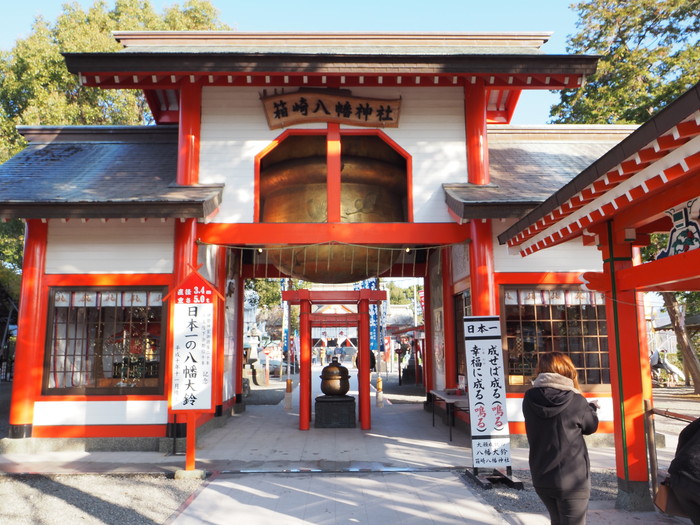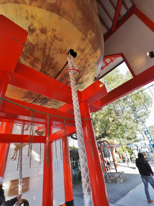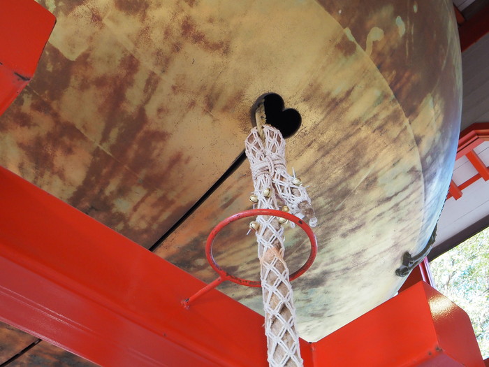 見上げれば巨大な鈴から綱が下がっており、その綱を引っ張ると鈴が鳴らせるようである。他の参拝客が鳴らしていたのを聞いていたが、巨大鈴自体の音なのか、綱に括り付けられていた小鈴の音なのか判断できませんでした。