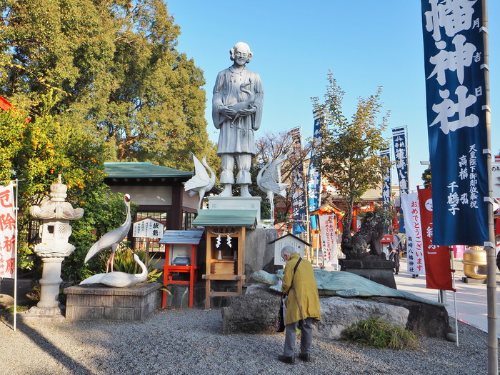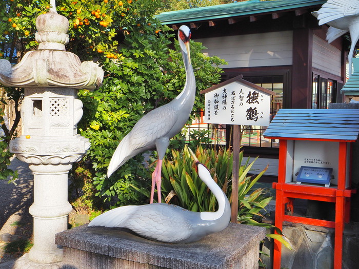 参道の左側には、ツルを抱いた神様の像が立っている。鶴神様と記されているが、祭神の武内宿禰がモデルなのであろう。武内宿禰がツルを抱いたエピソードなど聞いたことはないが300年以上も生きたという日本最長寿の神様と鶴千年とも言われるツルのコラボは長寿祈願には持って来いの組み合わせだ。