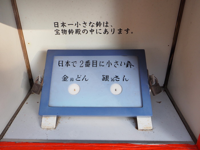 さらにツルとカメの間には、日本で2番目に小さい鈴が。日本一大きい鈴の次は日本で2番目に小さい鈴とな!……こうなると日本一小さい鈴の存在が気になるところだが、安心してください! ちゃあんとこの神社にあります。