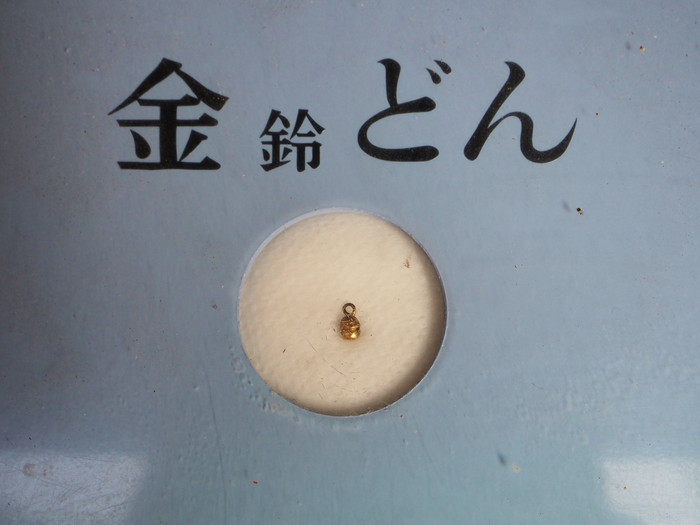 大さわずか数ミリの鈴。金銀一対になっている。こちらは金鈴。「どん」と付けるところが鹿児島らしい。