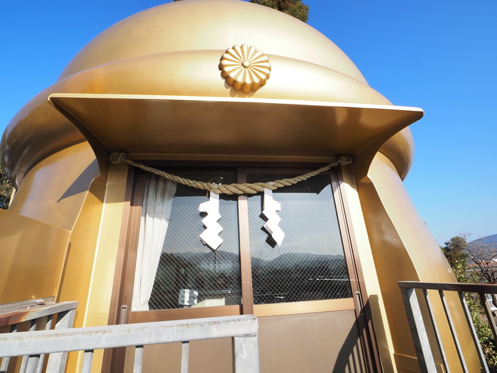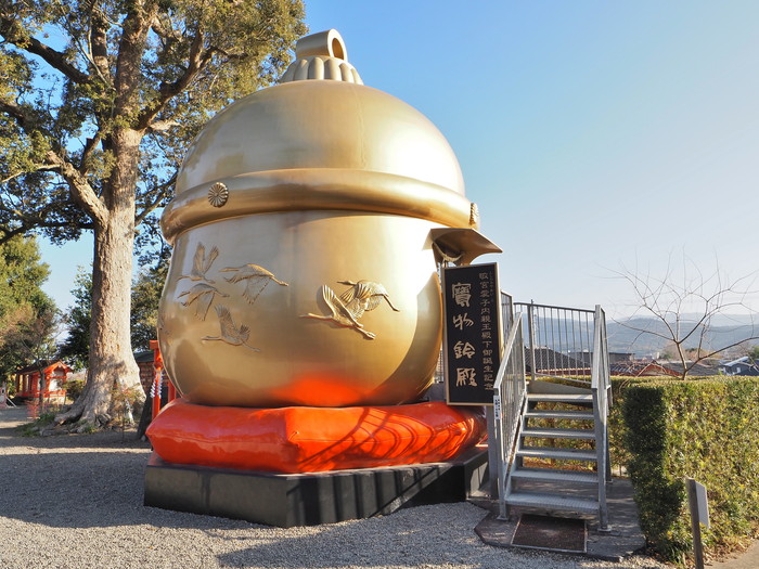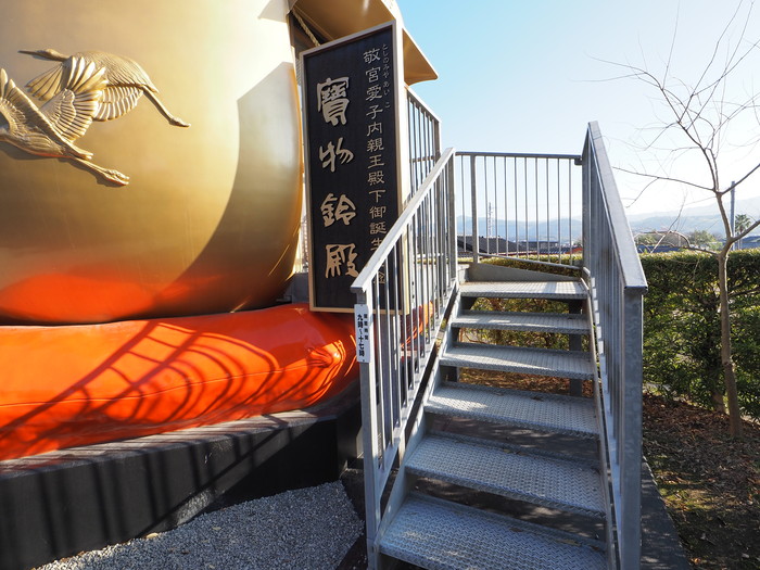 さて、ツルの次はまたしても鈴だ。宝物鈴殿という鈴型の建物。コレが日本一大きい鈴なのでは? と思うが、基本鈴とは音が鳴るもの、というルールらしく、ここはあくまでも建物という扱いなのだ。