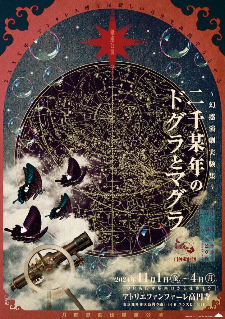 初代代表であり、寺山修司スタッフや京都精華大学マンガ学部教授などを務めた劇作家・高取英の急逝(2018)、立て続けに襲ったコロナ禍などの試練をこえ、この11月、3年ぶりとなる実験公演企画「月蝕歌劇団・蠍座公演」が上演される。