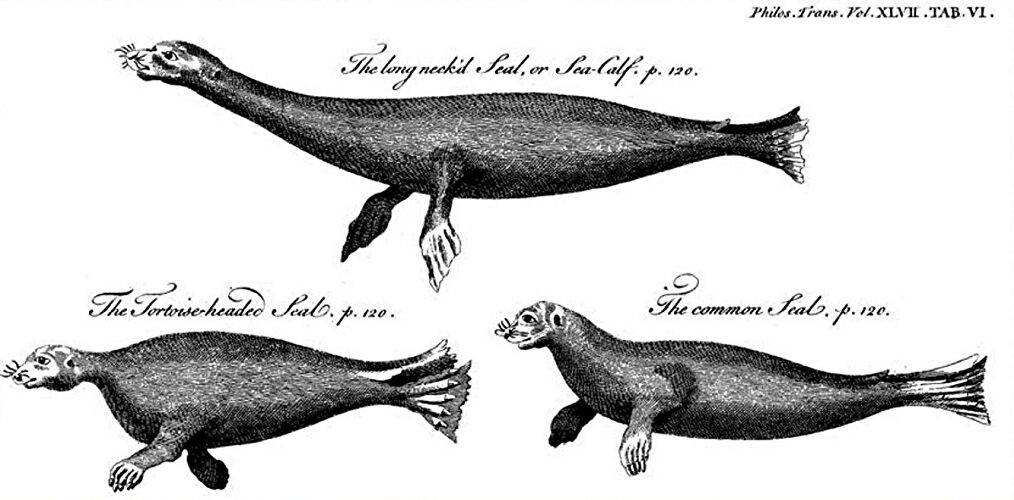 實吉氏によれば、そもそも欧米人はアザラシが好きなので、目撃報告に似せて無理矢理首を長くしてみせ、湖底怪獣の正体としたのではないかと推測している。