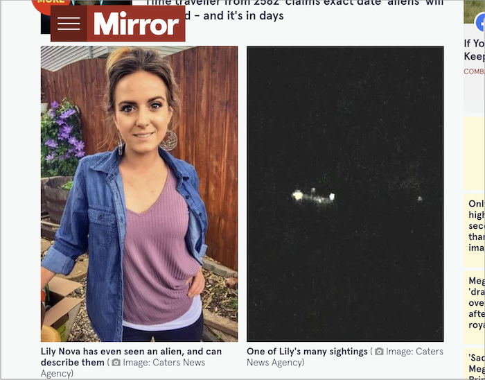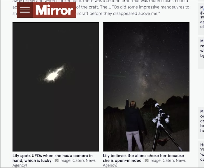 英大手メディア「Mirror」の報道によると、衝撃的な主張を展開しているのは自ら「スターシード」を名乗るリリー・ノヴァさん。コロナ禍によるロックダウン中に天体写真の撮影を始めたところ、2021年11月に「説明のつかない物体」を目撃したという。