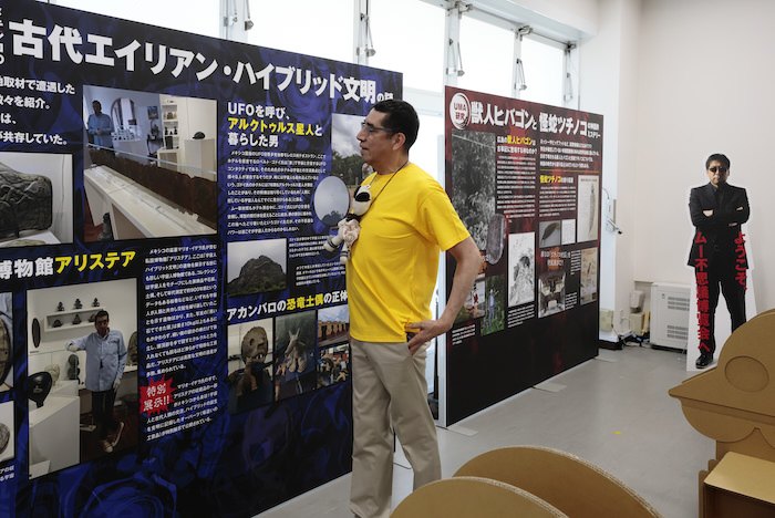 そして最後に通訳を伴って登壇したのは、園内に展示されている「宇宙人遺産」の所有者であり、それらを収蔵するメキシコの博物館「アリステア」の支配人でもある特別ゲスト、マリオ・イゲラ氏だ。展示を許諾した宇宙人遺産について、「何千年もの間、人間が他の世界の兄弟・姉妹と共存し、接触してきたことを示すものです」「それらは私たち人間の技術的・精神的な進化に影響を与えている」と語ると、会場は一気に真剣なムードに。