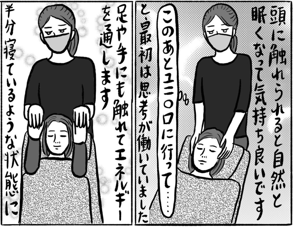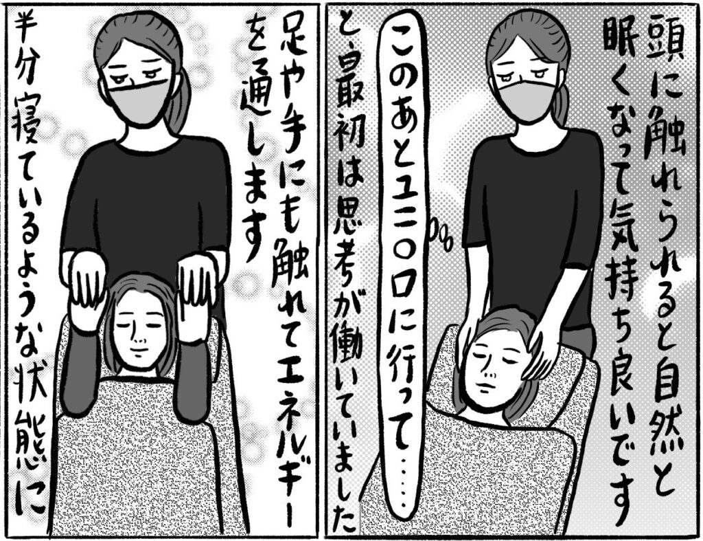 優しいタッチの施術はただ気持ちよくて、何度か眠りにいざなわれました。施術後、鶴岡さんに「顎が動いていたので、ストレスから歯を食いしばる癖があるのかもしれません。そうすると顎に筋肉がついて、顔が大きくなってしまいます」と教えていただきました。上級講座を受けると、リフトアップの手法も教えてもらえるとか。まずはアクセスバーズでお金のブロックを外して、経済力を高めたいです。