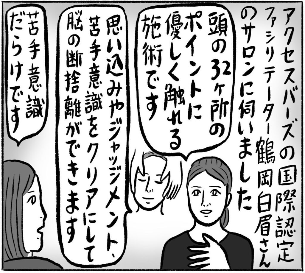アメリカ発のエネルギーワーク「アクセスバーズ」。頭などに触れてもらうだけで脳が瞑想状態になり、モヤモヤが晴れるというありがたい施術です。