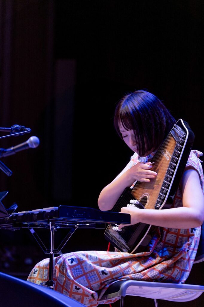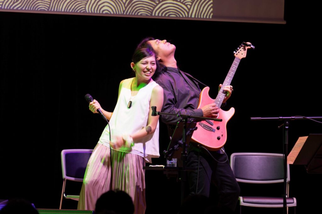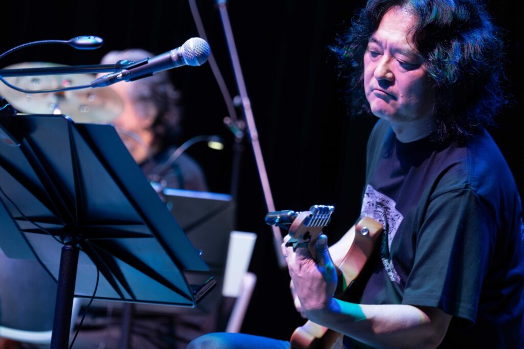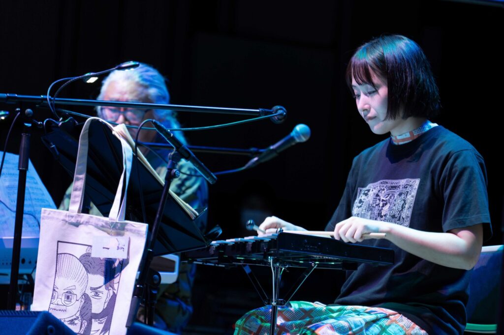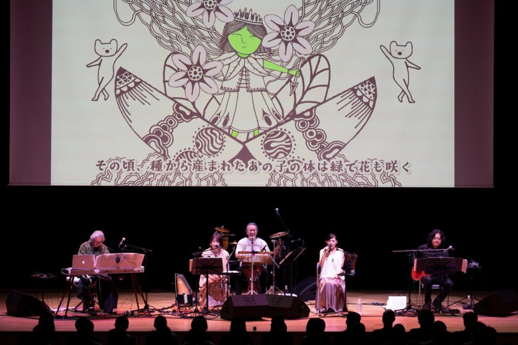 というのも、con TIKIのメンバーである戸塚さんの朗読に、植松さんが伴奏を生演奏でつけていく、音楽と朗読が一体になったcon TIKIの新プロジェクト“アカリガタリ”の楽曲は、どれもが昔話のようなムードをまとっている、非常にアヤシゲなもの。今回は「死神くん」と「あの世のルール」、そして「鬼は外」が朗読と演奏で披露されました。
