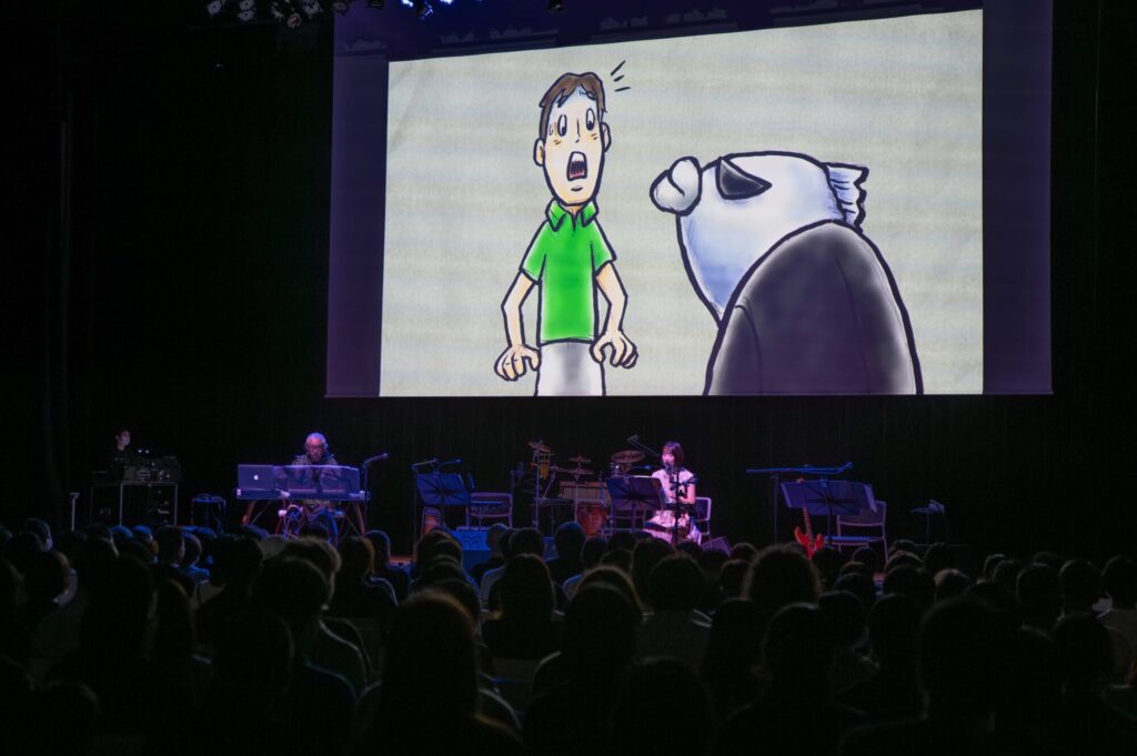 朗読される物語には、新人の死神にお菓子をあげて家族の死期を伸ばそうとする子どもや、死んだろくでもない父親の幽霊を無碍にする息子と、その悲劇。そして、つまはじきにされる少年が出会った鬼との遭遇などなど……不思議と温かく、でも心をぞわぞわさるような話の数々。ユニークなイラストとともに、声と音がまじりあう物語空間は、圧倒的に唯一無二でした。
