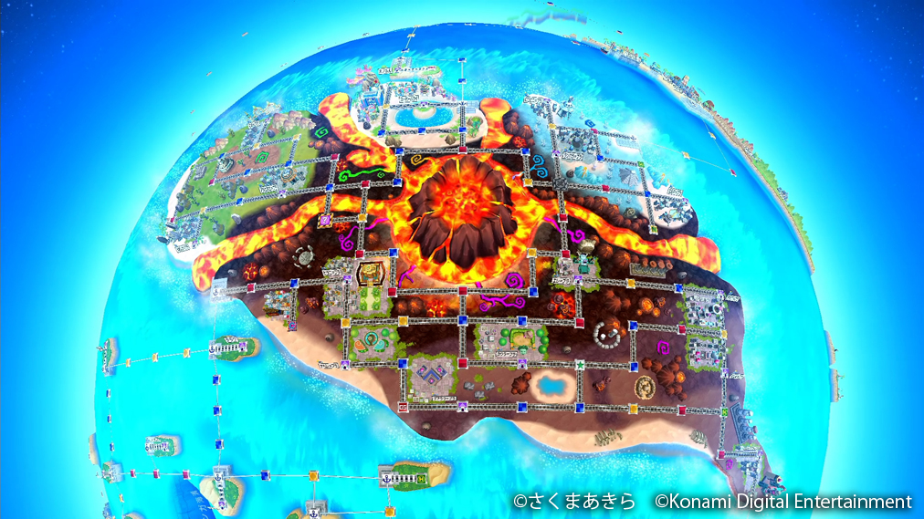『桃鉄ワールド』で浮上するムー大陸は、巨大な活火山を中央に周囲を4つの島ゾーンで構成したマップになっている。ナーカル碑文にちなんだ「碑文クレープ屋」や、イースター島に伝わる謎の絵文字体系郡「ロンゴロンゴの壁」、ムー大陸滅亡の引き金となった地下空洞のガスから「地下空洞ガス会社」など、謎多きムー大陸ならではの要素が詰め込まれた内容だ。しかも各所に超古代文明のものと思しき奇妙な遺跡群や未知なる生物が潜んでおり、ミステリー探検のようなマップになっている。