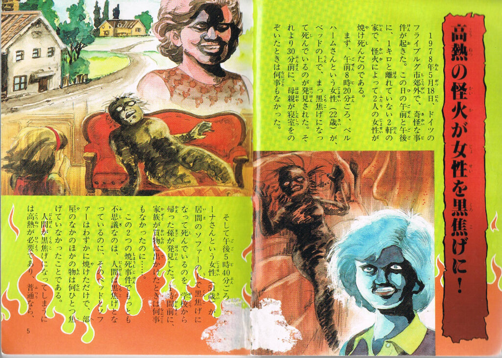 火種もないのに人間の肉体だけが焼失し、衣服や周囲は燃えていない……。謎めいた「人体自然発火」は定番の怪奇現象ネタとして、昭和キッズを戦慄させていた。