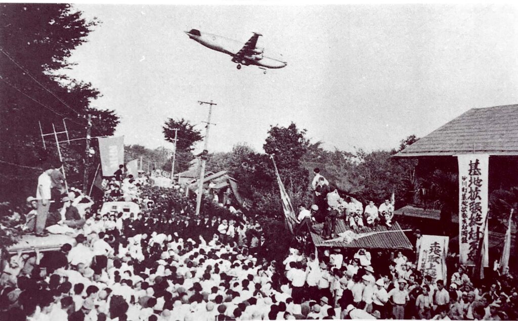 大学入学の年1956(昭和31)年は、前年に始まった在日アメリカ米軍立川飛行場拡張に対する反対運動、いわゆる砂川闘争がもっとも先鋭化していた時期だ。 砂川闘争は1955(昭和30)年3月、在日アメリカ軍がジェット爆撃機の発着のためとして立川基地の他小牧、横田、木更津、新潟の5つの飛行場の拡張を要求したことがきっかけで始まった。基地拡張のため、砂川町の17万平方メートルの農地が接収される予定だったが、砂川町長をはじめとする住民はこれに激しく抵抗、当時全国的に展開していた反基地闘争の中、総評や国鉄労組などの労働組合、全学連も反基地闘争に参加するなどして、全国の活動家が砂川町に結集する状況となっていた。