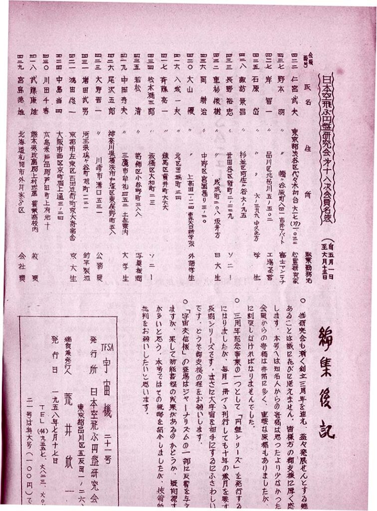 そして「科学創作クラブ」を通じ、「日本空飛ぶ円盤研究会」の存在も知り、こちらにも入会した。