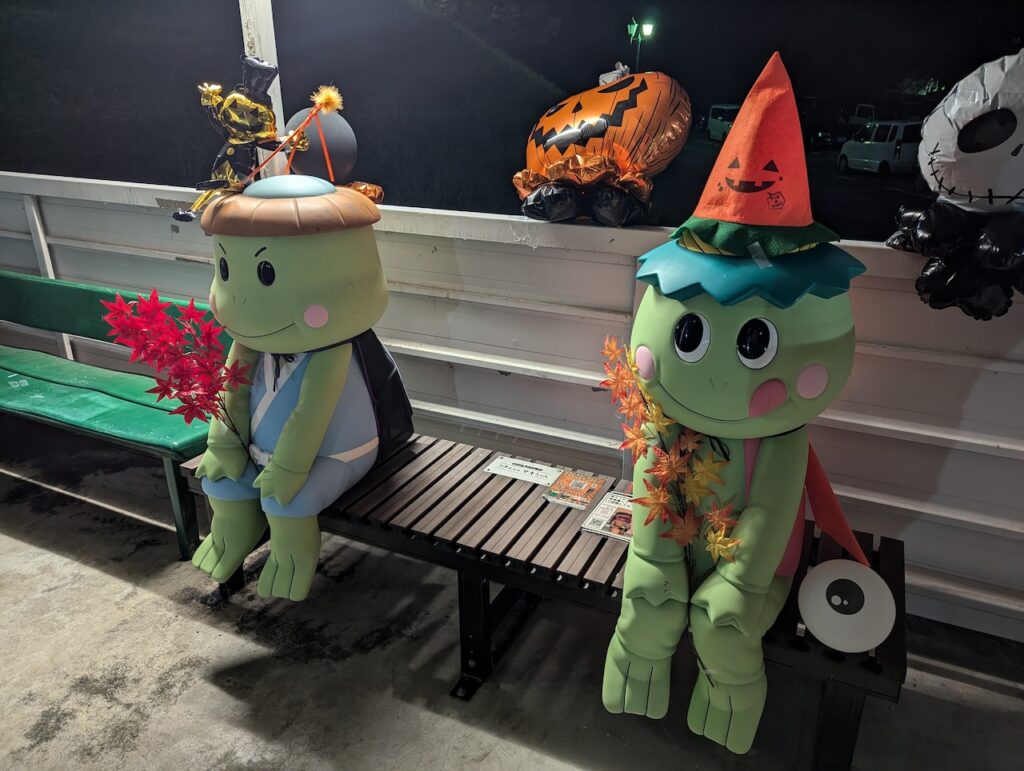 神戸医療未来大学の学生は福崎町の祭りや行事にも参加することが多く、町にとってもありがたく嬉しい存在だそう。また在学生の3〜4割が学内の寮で生活しているのだが、大学では昨年この寮の名前を魑魅魍魎をもじって「ミチモウ寮」と命名。秋にはチミモウ寮祭と名付けられた学祭がおこなわれ、ハロウィン仮装パーティーなどが繰り広げられる。大学の入り口では福崎町のマスコット河童・フクちゃんサキちゃんの妖怪ベンチが出迎えてくれる。