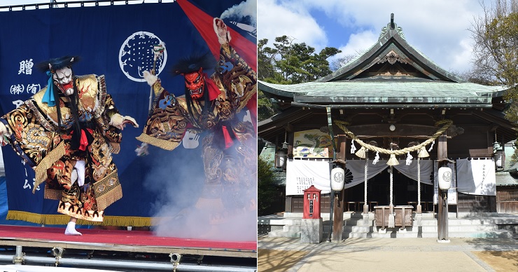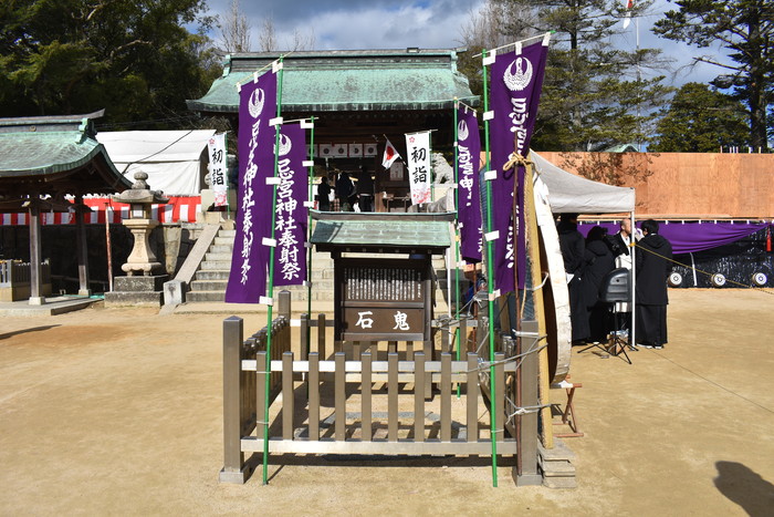 また、勝利の際の踊りは、鬼石を踊り周る「数方庭祭(すほうていさい)」の起源とされている。さらに、一月には全国の神社で、弓矢で的を射る奉射祭(ぶしゃさい)が行われるが、忌宮神社では特に重視され、仲哀天皇の故事にちなみ、宮司自ら奉製した弓矢を引く。鬼石と神事によって示される塵輪征伐の神話は、神社がその存在そのものを以て語るかの如くだ。