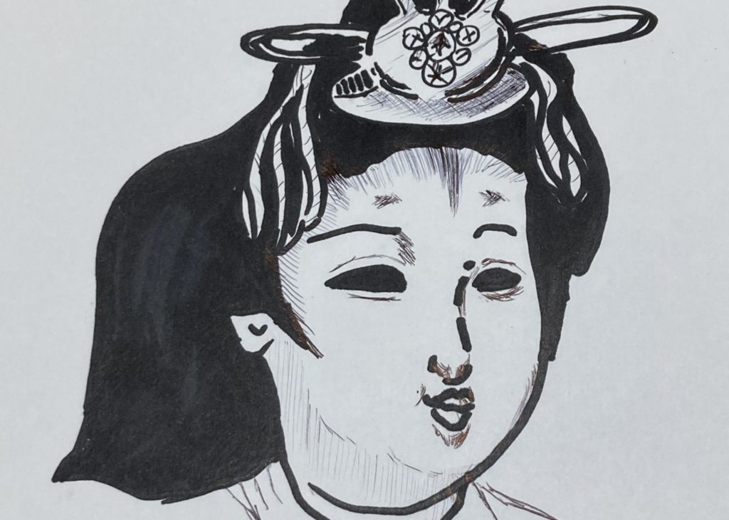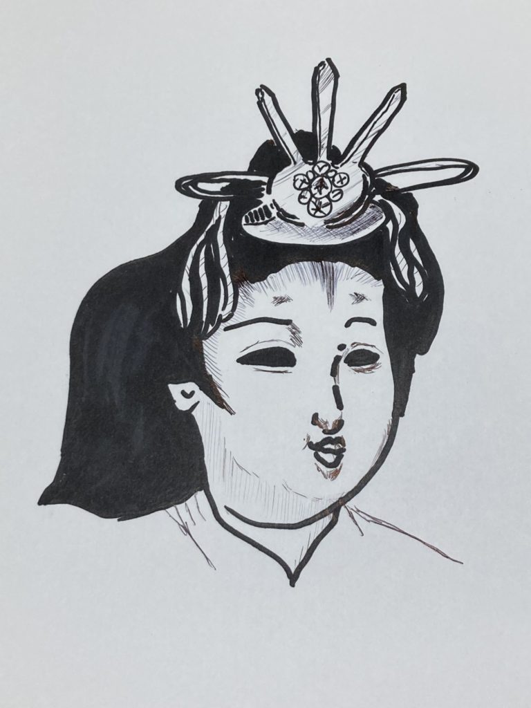 帰り道ーー3年間の辛抱のご褒美がこんなものかとガッカリした末の息子は、雛様を道端に棄てようとしました。その時です。