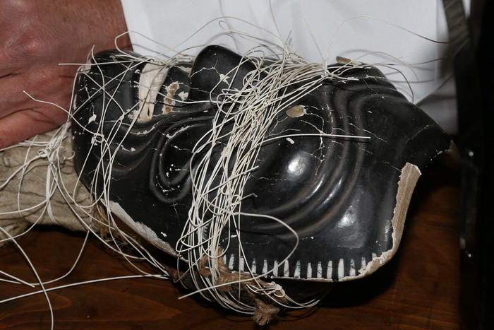 何という姿だろう。全身を紐で縛られており、心なしか面の表情も苦痛に満ちた感じだ。