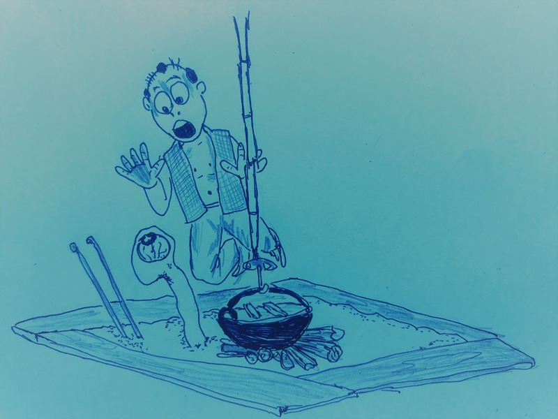 「おいおい、本物の納豆はもっと小さいぞ」と教えると素直に小さな納豆に化けたので、若者はすかさず、これを摘まみとって飲み込んでしまいました。