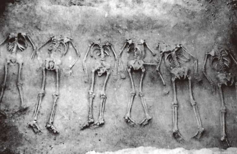 ところで殷の恐ろしい風習に、生贄と殉葬というものがあった。殷では、動物とともに征服した民族なども祭祀の際に生贄として捧げられていた。殉葬とは、高貴な人物が亡くなったときに、家臣や奴隷、妃などが、一緒に殺され埋葬されることで、殷では広く行われていた。