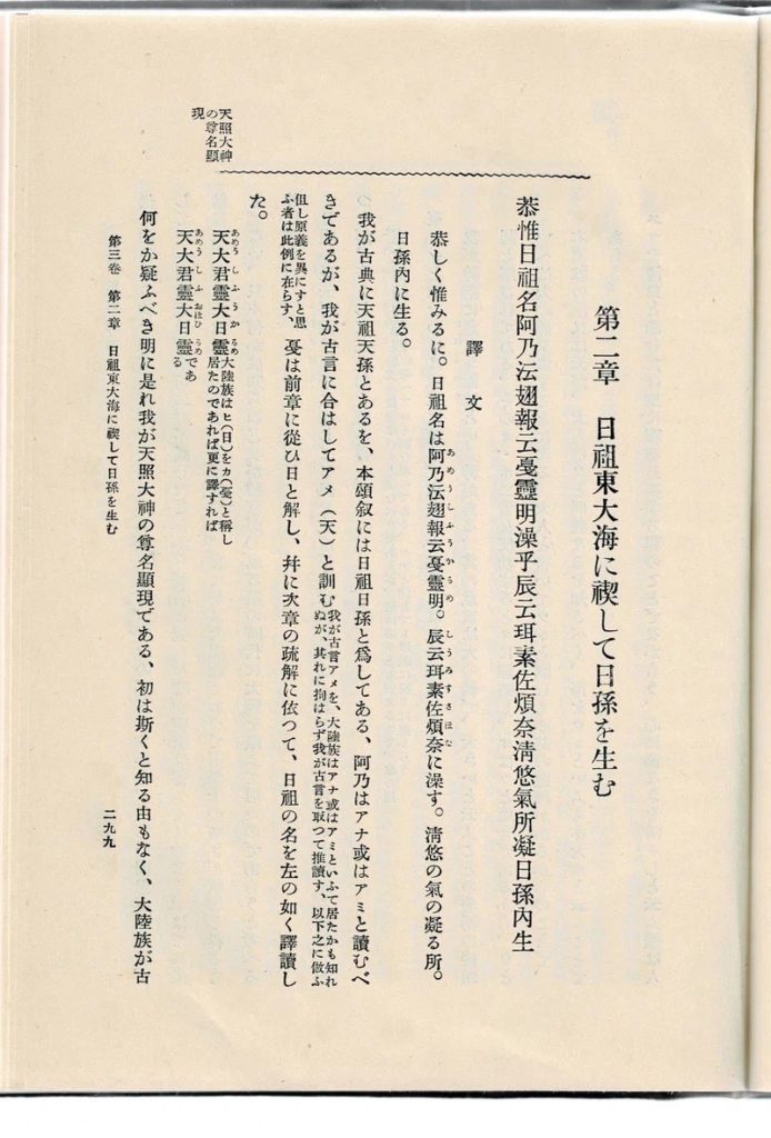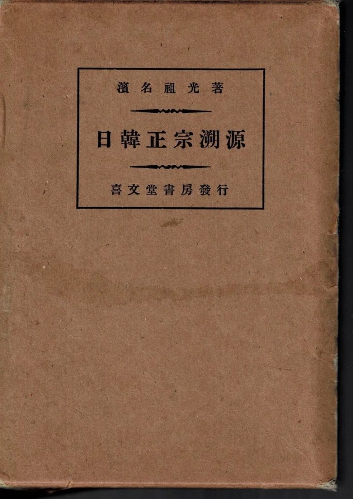 浜名は大正3年(1914)には陸軍を退役しているが、『契丹古伝』の解読・研究は地道にすすめ、大正15年(1926)にはそれを集大成した著作『日韓正宗溯源』をついに上梓した。同書には『契丹古伝』の原文が47章に整理されて収録されていて、それぞれに訳文と詳しい解説が付されている。「日韓正宗溯源」と名づけられた所以は、本記事を最後まで読んでいただければ、おのずとおわかりいただけるだろう。
