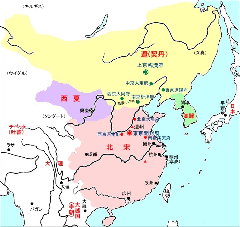 「契丹」とはモンゴル系民族のひとつの称で、彼ら契丹族は古くから遼河流域を本拠としていた。そして10世紀には新王朝として遼(大遼、大契丹ともいう)を興し、盛時には満州全体とモンゴリア(蒙古)の大部分を支配して、中国本土の王朝をもおびやかした。しかし、12世紀はじめには女真族の金(のちの清朝のルーツ)に攻められて滅亡している。